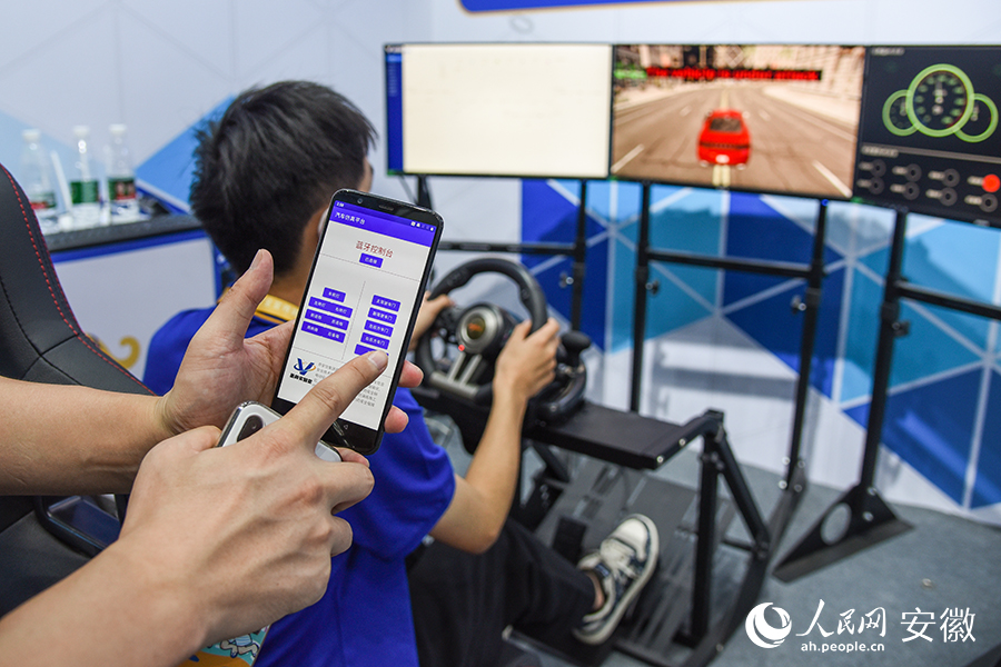 觀眾體驗汽車仿真平臺網絡攻防演示。人民網 李希蒙攝