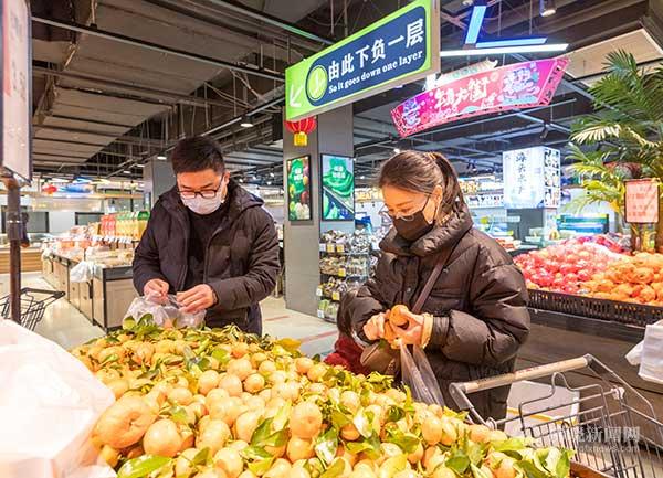 春節臨近,年貨采購進入高峰期,我市各大商超備足貨品,消費市場購銷兩旺,節日氛圍日漸濃郁。記者 蘇洋 攝