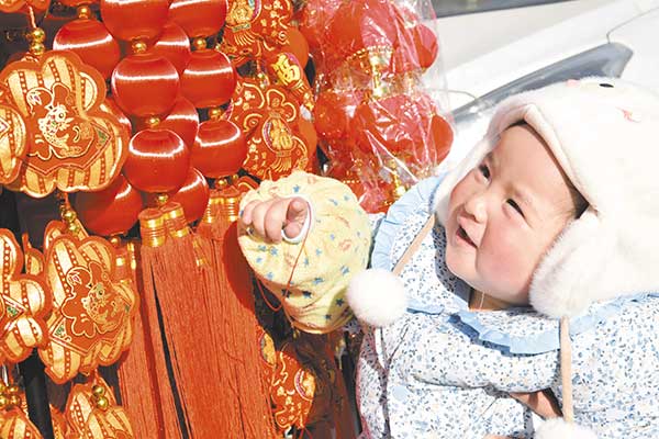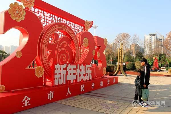 街頭的“新年快樂”造型,營造了喜慶祥和的節日氛圍。 特約攝影 丁輝