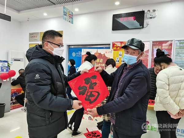 近日,安徽移動靈璧縣分公司舉辦“寫春聯 送祝福”活動。活動邀請省書協會員、縣書法家協會及書畫名家獻墨寶,把新春祝福送到千家萬戶。 趙俊玲 張娟娟 攝
