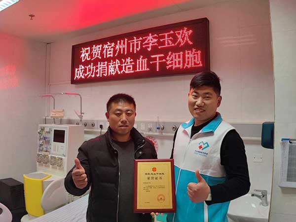 李玉斗捐獻造血干細胞期間,弟弟李玉歡全程陪同。感佩哥哥的無私奉獻,大愛的種子便在李玉歡的心中悄悄萌發。回到宿州,李玉歡很快加入中國造血干細胞捐獻者資料庫。