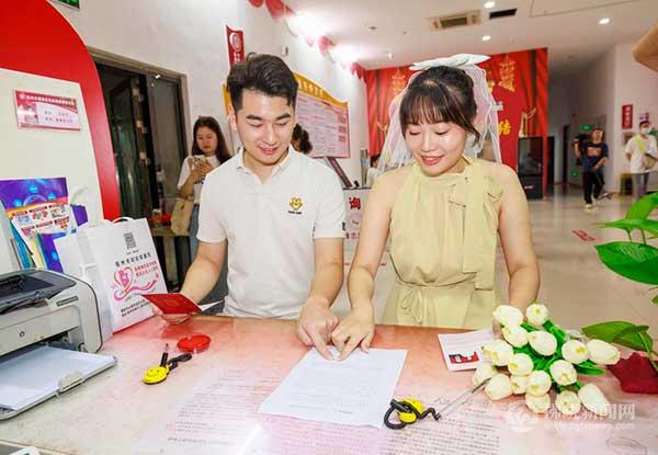 據統計,8月22日“七夕”當天,埇橋區共有182對新人登記結婚。 (記者 黃華)