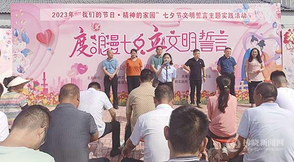 8月22日上午,碭山縣精神文明建設推進中心、碭山縣婦女聯合會、共青團碭山縣委員會聯合葛集鎮新時代文明實踐所在葛集鎮毛雷莊村開展了“度浪漫七夕·立文明誓言”主題活動。