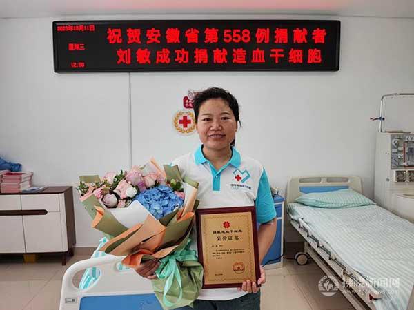 拂曉新聞網--拂曉報訊 10月11日,埇橋區蒿溝鎮衛生院醫生劉敏,在合肥成功捐出256毫升造血干細胞混懸液,為一名陌生的血液病患者點亮生命之光。劉敏成為安徽省第558例、宿州市第41例成功捐獻造血干細胞的志愿者。