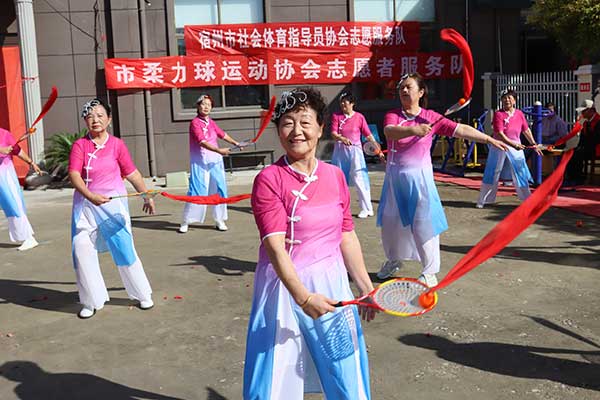 10月20日,市柔力球運(yùn)動(dòng)協(xié)會(huì)會(huì)員在展演柔力球。重陽節(jié)即將來臨,市柔力球運(yùn)動(dòng)協(xié)會(huì)、埇橋區(qū)老年大學(xué)組織會(huì)員、學(xué)員走進(jìn)蓮花老年頤養(yǎng)中心,開展慰問演出。活動(dòng)現(xiàn)場,柔力球、舞蹈、葫蘆絲、豫劇等精彩節(jié)目輪番上演,贏得了老人的陣陣掌聲。 特約攝影 劉中玉