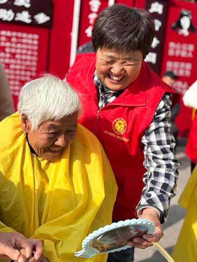 陳玲(右)讓老人“檢驗(yàn)”新發(fā)型。