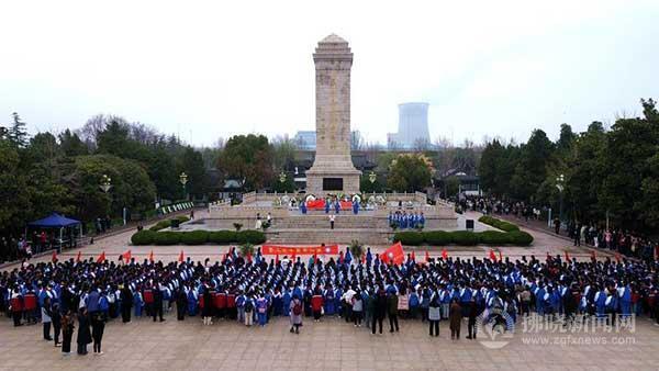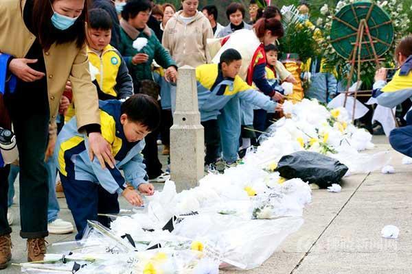 3月28日,埇橋區教體局組織中小學、幼兒園師生來到宿州烈士陵園,開展清明祭掃活動,緬懷革命先烈,接受愛國主義教育。 特約攝影 丁輝