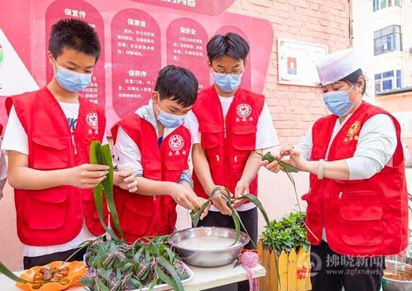 6月6日,端午節臨近,埇橋區三里灣街道紡織路社區舉辦“濃濃端午韻 暖暖粽香情”主題活動。活動現場,轄區居民、志愿者與青少年共同包香粽,體驗傳統民俗,傳遞鄰里親情。記者 蘇洋 攝