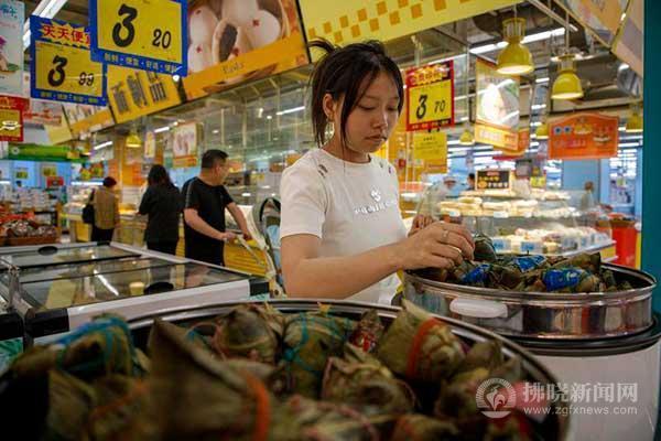 6月6日,市民在宿城一超市挑選粽子。 記者 蔣幫煜 攝
