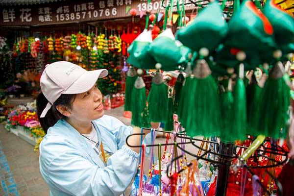 端午臨近,又到了品嘗香甜軟糯粽子的時節。與此同時,帶有端午元素的香囊、五彩繩、艾草花等各色節令商品熱銷,使得這個傳統節日儀式感滿滿。