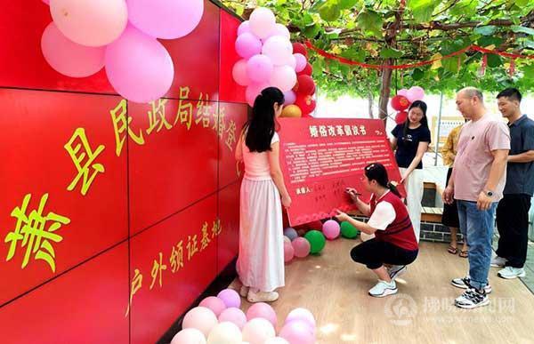 8月9日上午,3對青年在蕭縣民政局頒證師的見證下,領取結婚證。近年來,蕭縣通過舉辦集體婚禮、頒證師見證、簽訂婚事新辦協議等,倡導婚俗改革,培育文明新風。 特約攝影 李鵬