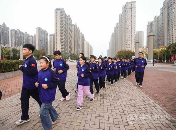 11月2日,在宿城三角洲公園廣場,參加藍天“益起跑”的青少年在藍天救援隊教練的帶領下進行跑步等體育鍛煉。該項公益體育活動是由宿州藍天救援隊倡議發起,以提高青少年身體素質、身心健康和團隊合作意識為宗旨?;顒娱_展一年多來,已有近2000名城區青少年利用雙休日時間,參加了專業體能訓練、安全知識講座和實踐等公益主題活動。記者 馬峰 攝