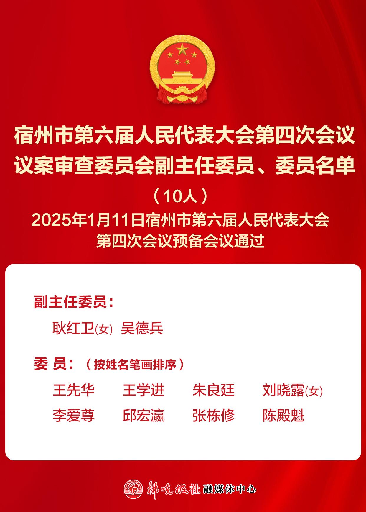 宿州市第六屆人民代表大會第四次會議議案審查委員會副主任委員、委員名單
