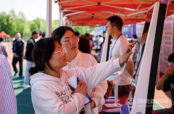 宿州職業(yè)技術(shù)學(xué)院畢業(yè)生在查看招聘會的崗位信息。