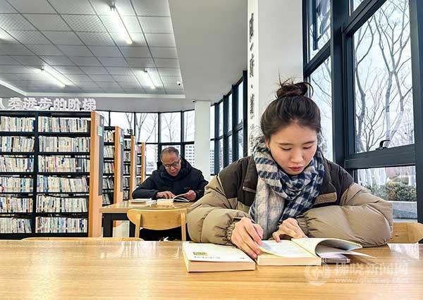 環(huán)衛(wèi)工人在呂家戶外勞動者驛站內(nèi)查閱書籍。