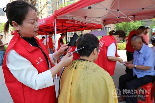志愿者在埇橋區北關街道淮海社區為市民義務理發。 特約攝影 張成伍